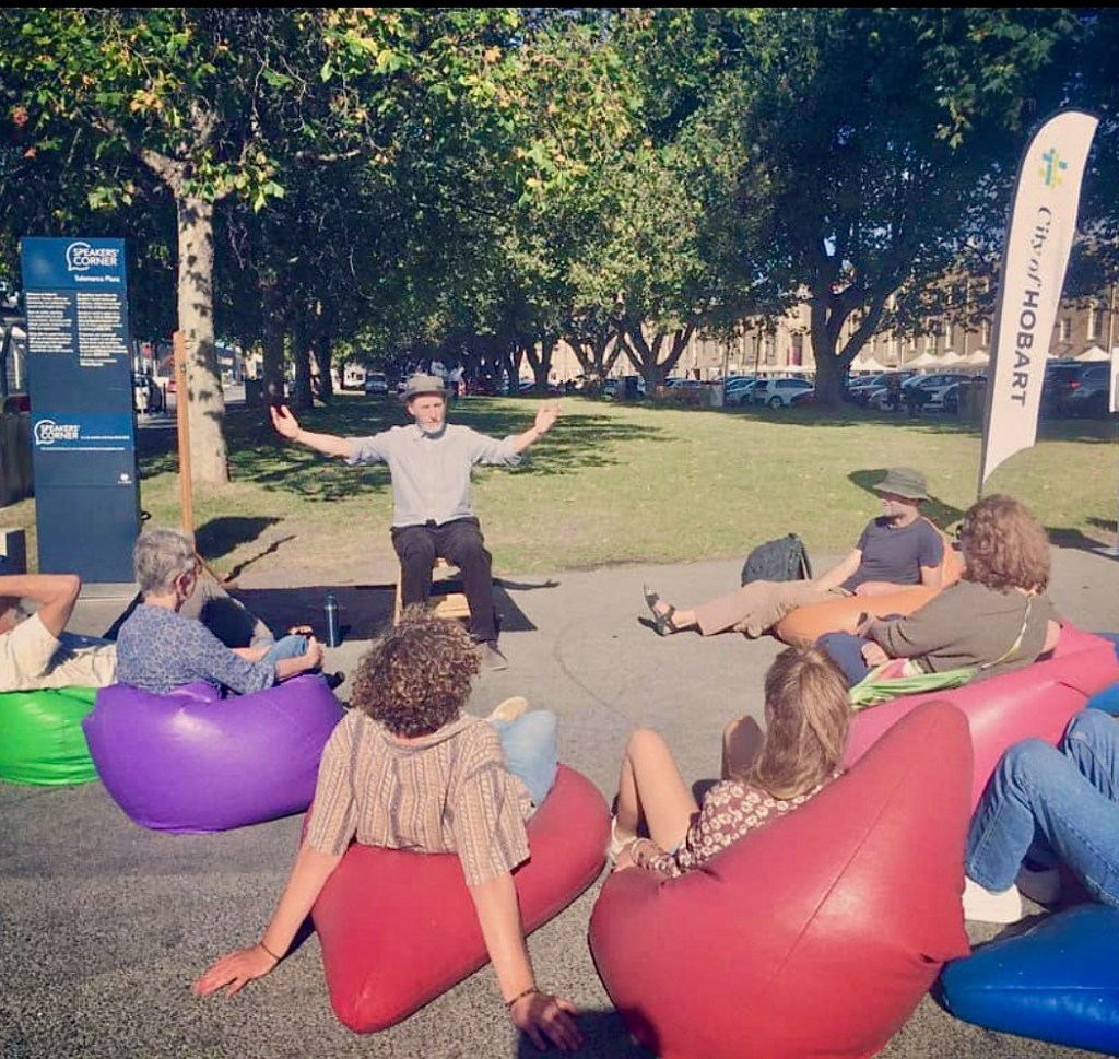 Performing at the re-launch of the Speakers Corner project of Hobart City Council.